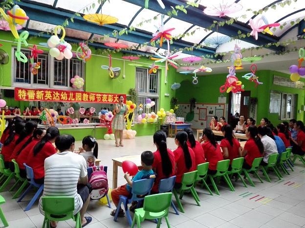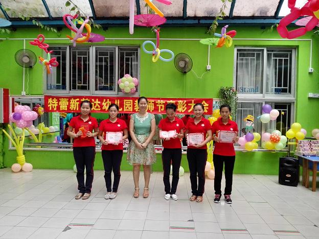 本次活动分为四部份,一、园长向默默耕耘、无私奉献的教师们致以节日的问候,向受到表彰的教师表示热烈祝贺并给获奖的教职工颁发荣誉证书和奖金。二、表演节目,各年级都精心准备好了自己年级的节目,特别是中班年级的节目非常精彩。三、进行激动人心的抽奖活动。四、聚餐,园长和厨房叔叔、阿姨一起为全体教职工准备了美味的美食,让全体教职工度过了一个愉快而有意义的教师节!