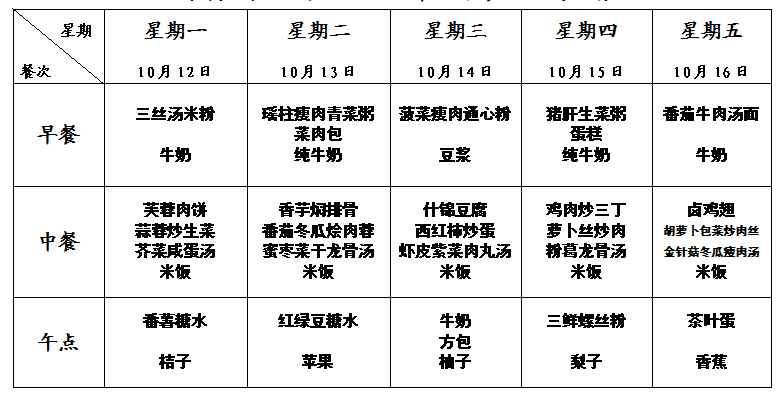 特蕾新裕锦幼儿园第八周幼儿食谱
