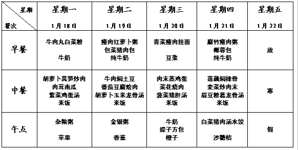 特蕾新裕锦幼儿园第二十二周幼儿食谱