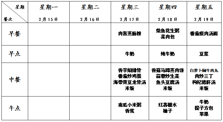 特蕾新裕锦幼儿园第一周幼儿食谱