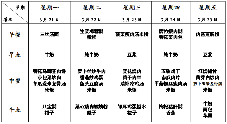 特蕾新裕锦幼儿园第六周幼儿食谱