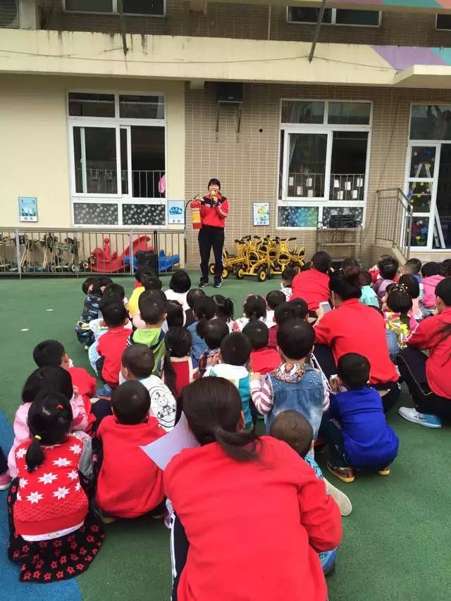 开学初,特蕾新理想幼儿园举行了每学期必演消防实战演练。