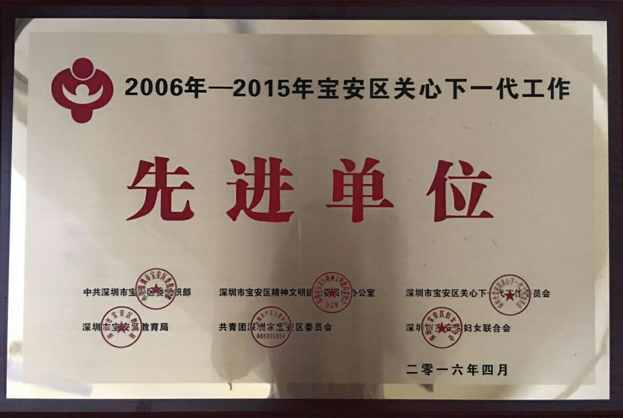 喜讯━━━特蕾新裕锦幼儿园荣获2006—2015年宝安区关心下一代先进单位