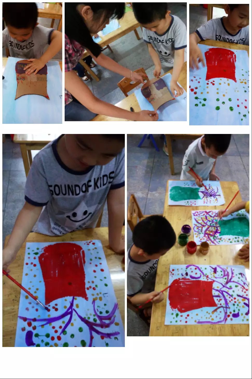 本次活动不仅提高了幼儿的审美能力和动手能力,让幼儿体验到了拓印带来的美感,同时也让幼儿从玩色的过程中体验到创作的成就感,为幼儿积极参加美术活动打下良好基础。