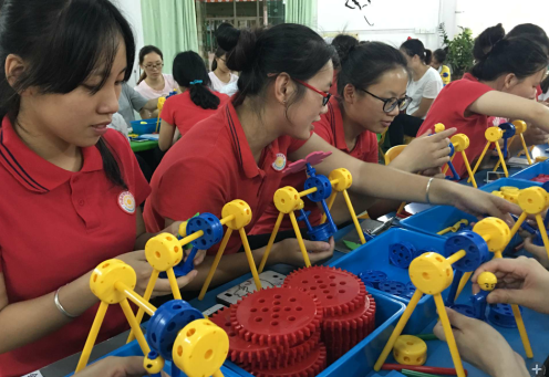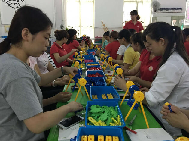 2016年5月11日,裕锦幼儿园的老师们在一起学习“万能工匠”建筑课程。此课程主旨在于“开发幼儿的想像力 提高幼儿的创造力”。