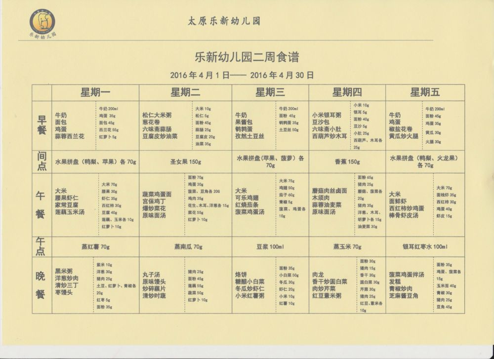 2016年四月份两周食谱
