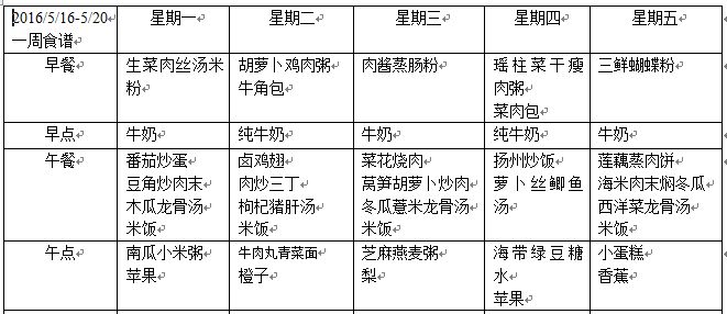 第十四周食谱
