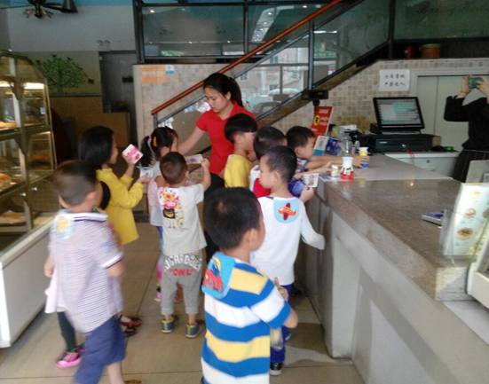 第二站,我们来到了面包店,小朋友们最开心了,看到好喝的牛奶、酸奶、好