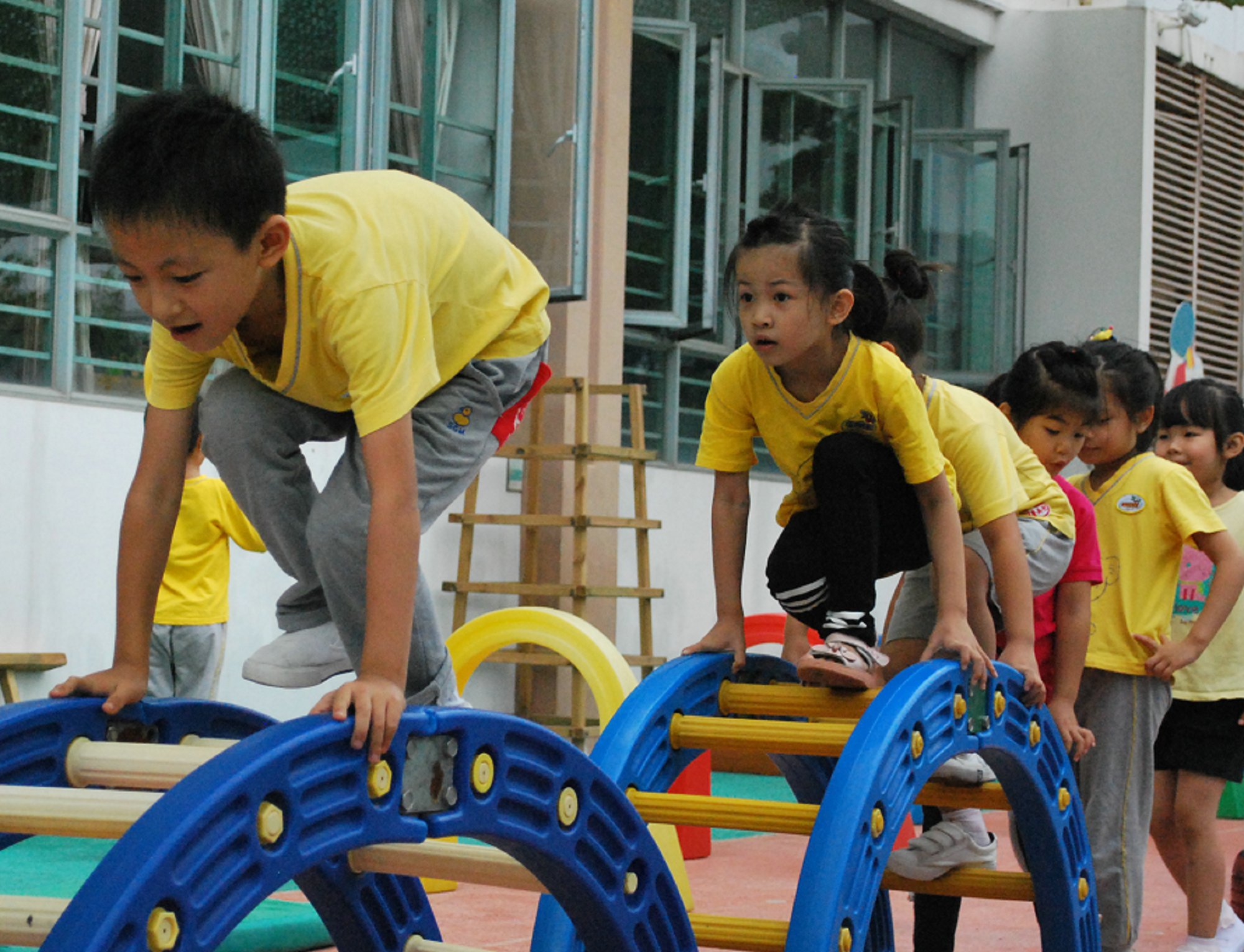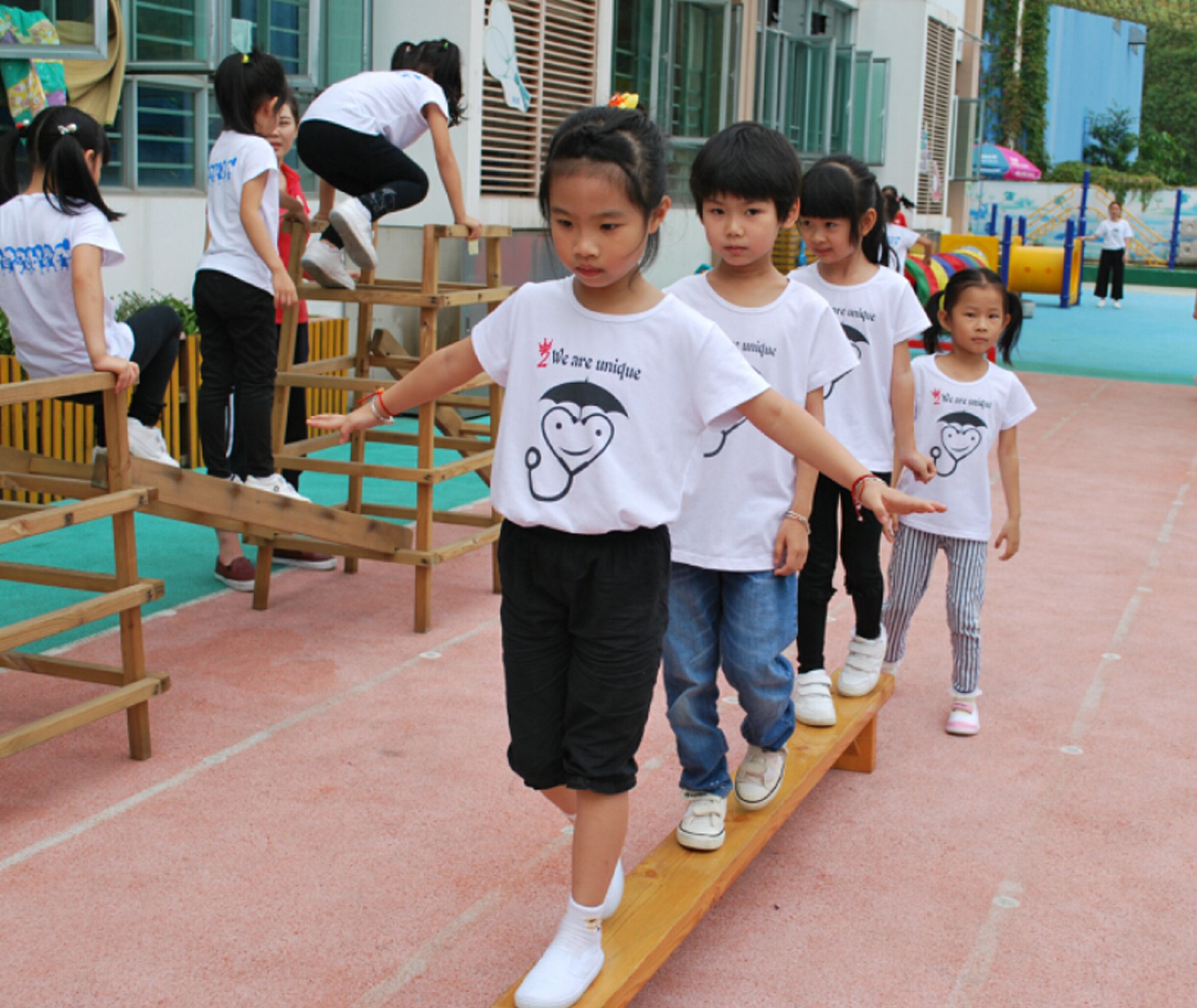为了促进幼儿身体生长发育,增强体质,结合幼儿各年龄特点,充分利用现有的场地和器械,采用年级大循环的运动形式,我园于今天开展了内容丰富多彩的体能锻炼活动。