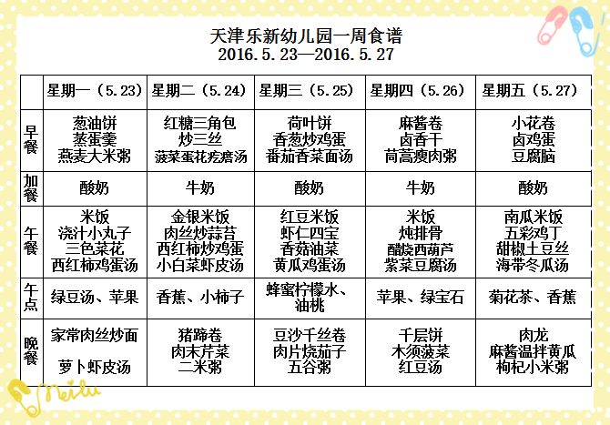 2016年5月第四周幼儿食谱