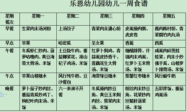 乐恩幼儿园2016.5.30-6.3一周食谱