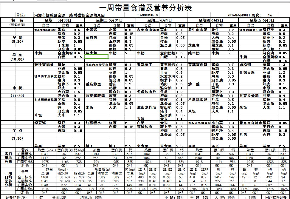 宝源幼儿园食谱