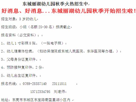 特蕾新东城丽湖幼儿园秋季火热招生中