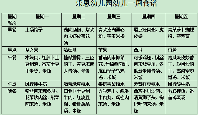 乐恩幼儿园2016.6.27-7.1一周食谱