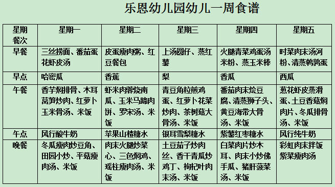 乐恩幼儿园2016.7.4-7.8一周食谱