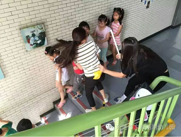 室的某个班。班上老师迅速拉响警报信号,听到信号,全园立即停止活动,并按照预定