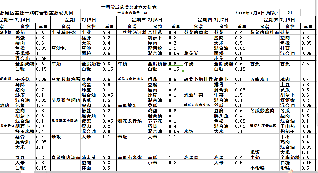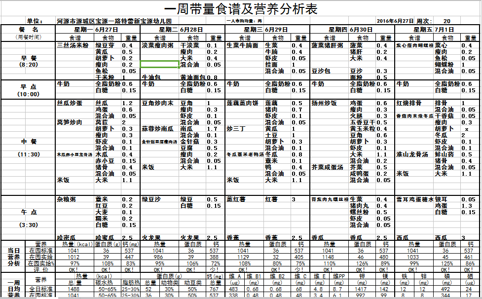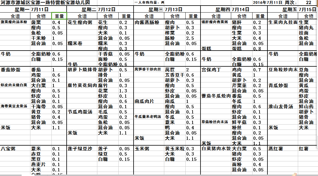 - 每周食谱