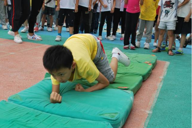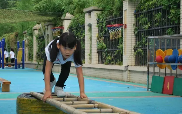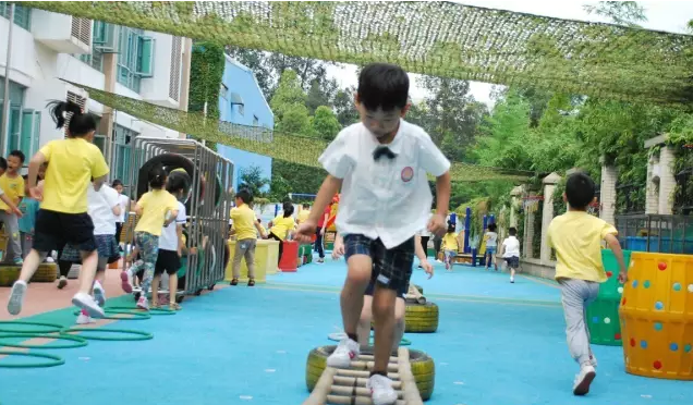 活动中,有匍匐前进,单脚跳,双脚跳,跨 ,钻,攀爬、滑滑梯等等游戏。比较惊险的要数走独木桥和爬梯和钻洞了,你看,四个轮胎两边一放,一个长梯中间一架,既方便又稳固的独木桥就出来了;小朋友们在老师的看护下提起了胆子,小心翼翼地走上了独木桥。最惊险、最有挑战力的要数大一班小朋友的“过云梯”游戏了,小朋友们光是听到这游戏的名字就已经“哇”地一片了;约1米高的云梯小朋友们在老师的看护下,也克服了心理的恐惧走了过去;只见他们双手伸平、一步一步、小心翼翼地过了云梯。