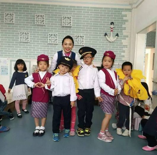 美丽的空姐妈妈给孩子们讲解了在飞行中的一些小知识,在飞机上如何系安全带、只有在紧急情况下才能使用气囊、降落伞。活动结束后宝贝们还穿上了空姐空少的制服,足足的过了把瘾呢!!!