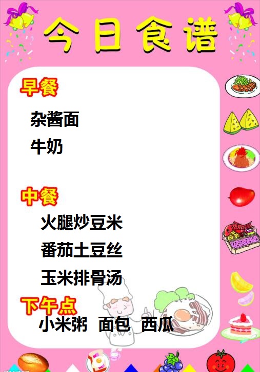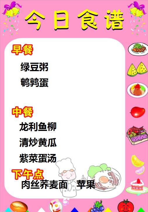 特蕾新首府幼儿园2017年6月12日——6月16日幼儿食谱