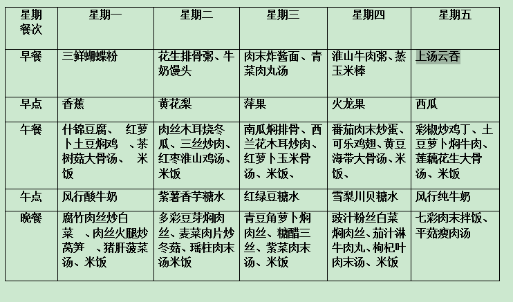 乐恩幼儿园2017.8.21-8.25一周食谱