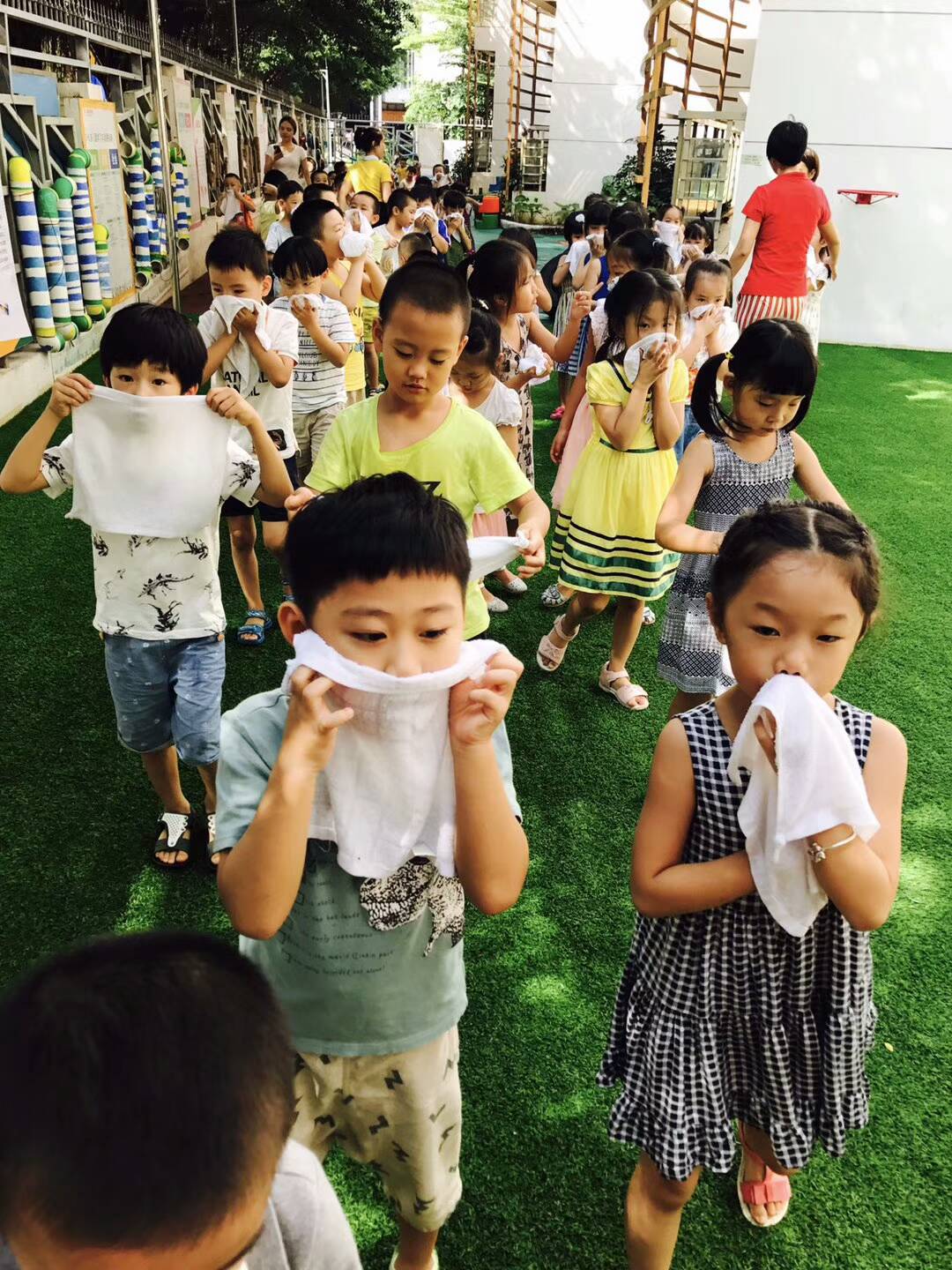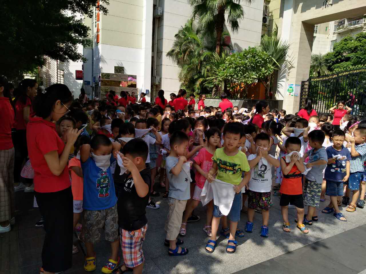 幼儿的安全防范一直是幼儿园工作的重点,为切实加强幼儿园消防安全教育,提高师生应对火灾危险的应急处理能力,积累集体疏散、消防救助、应急组织等实战经验,切实做好幼儿园的安全工作;增强幼儿的安全意识,提高幼儿的紧急疏散能力,严防拥挤踩踏等事故的发生。2017年9月14日我园开展了消防演习活动。