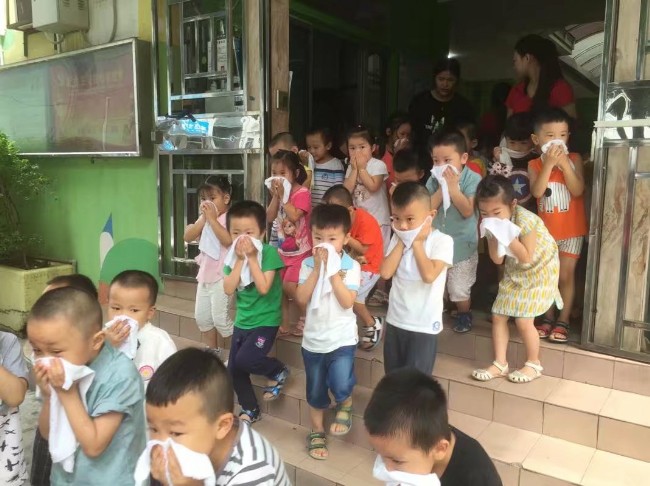 每学期开学第二周为我园消防安全周,为了进一步加强幼儿对突发事故的灵活应变能力,使幼儿掌握消防安全知识,从小培养消防意识,创造良好的消防安全环境,幼儿园在9月8日上午进行了消防演习。