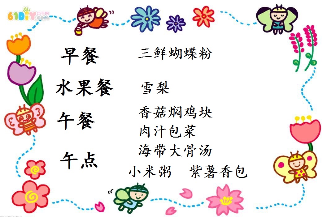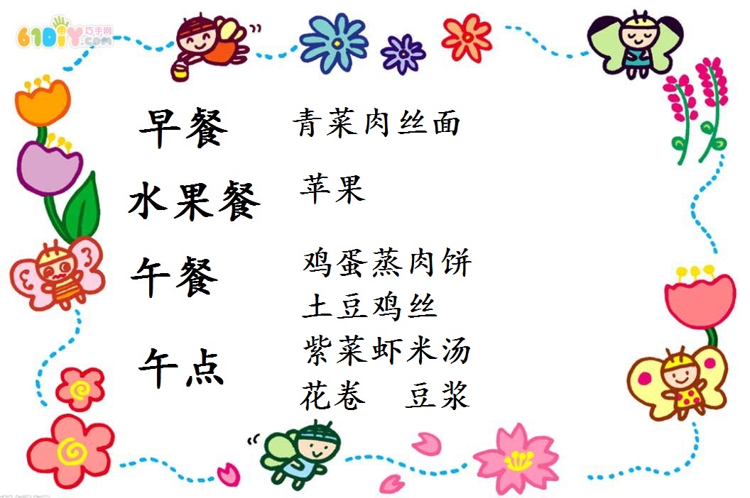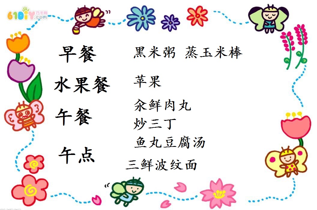 特蕾新首府幼儿园2017年9月25日——9月30日幼儿食谱