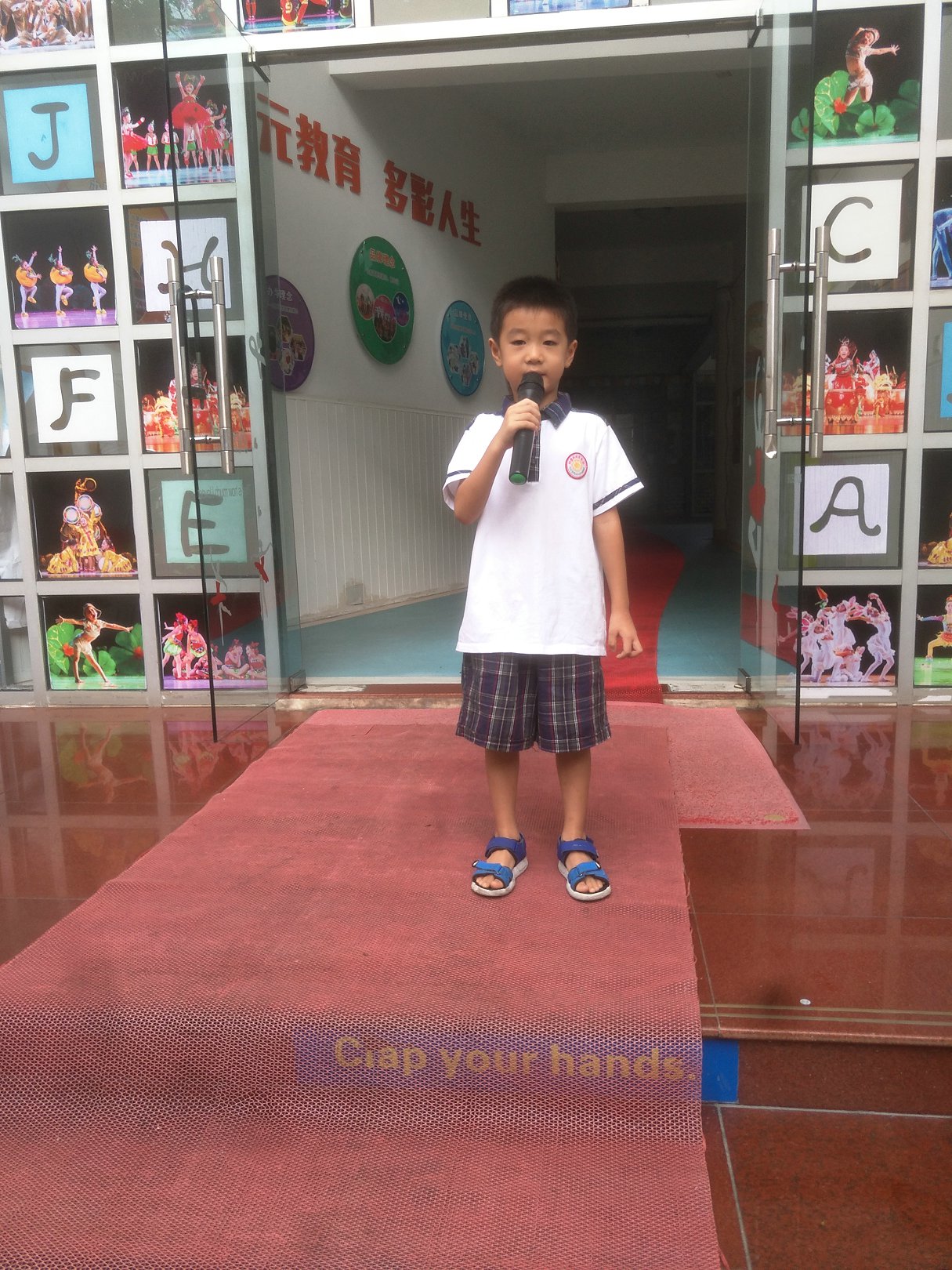 小主持人端正地站在台上,笑容满面,神采奕奕。宣布升旗仪式正式开始。
