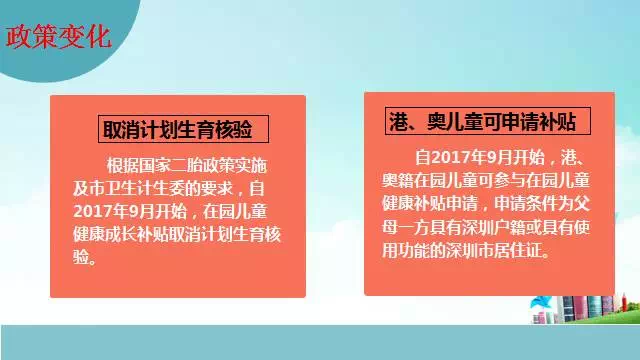 从本学年起,申请健康补贴的非深户籍(含港澳)在园儿童监护人均须办理本市新版居住证。(居住证必须保证在2017年9月-12月期间有效)