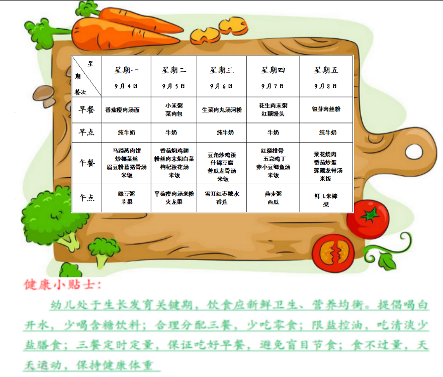 特蕾新裕锦幼儿园第二周幼儿食谱
