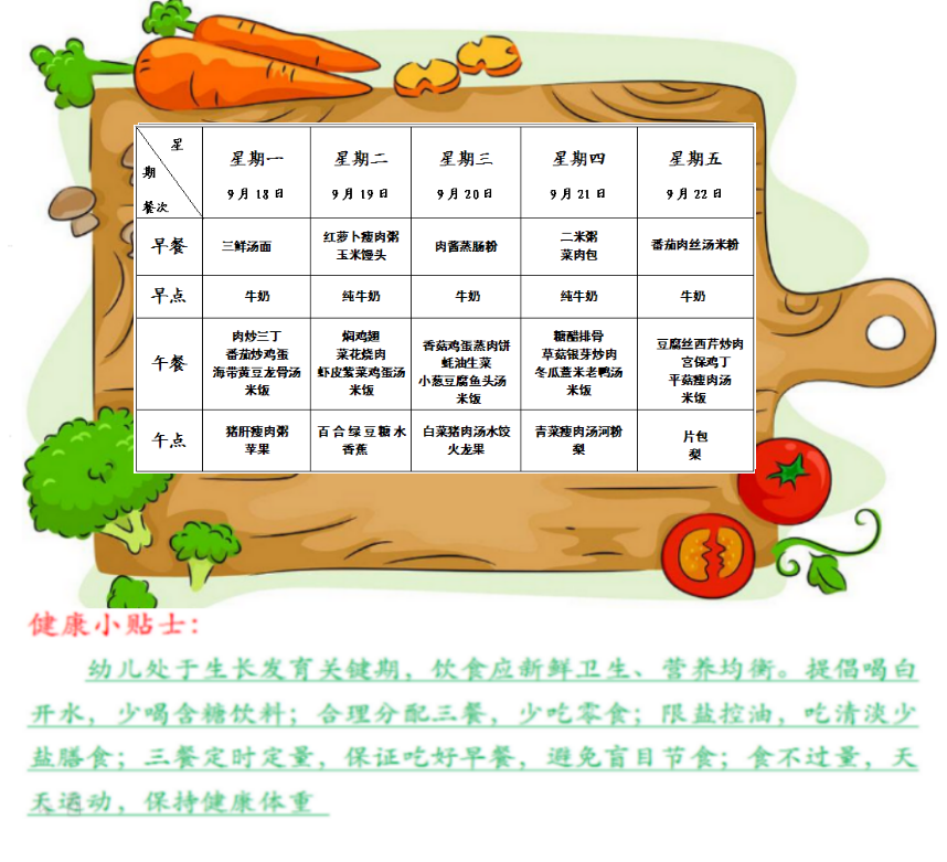 特蕾新裕锦幼儿园第四周幼儿食谱