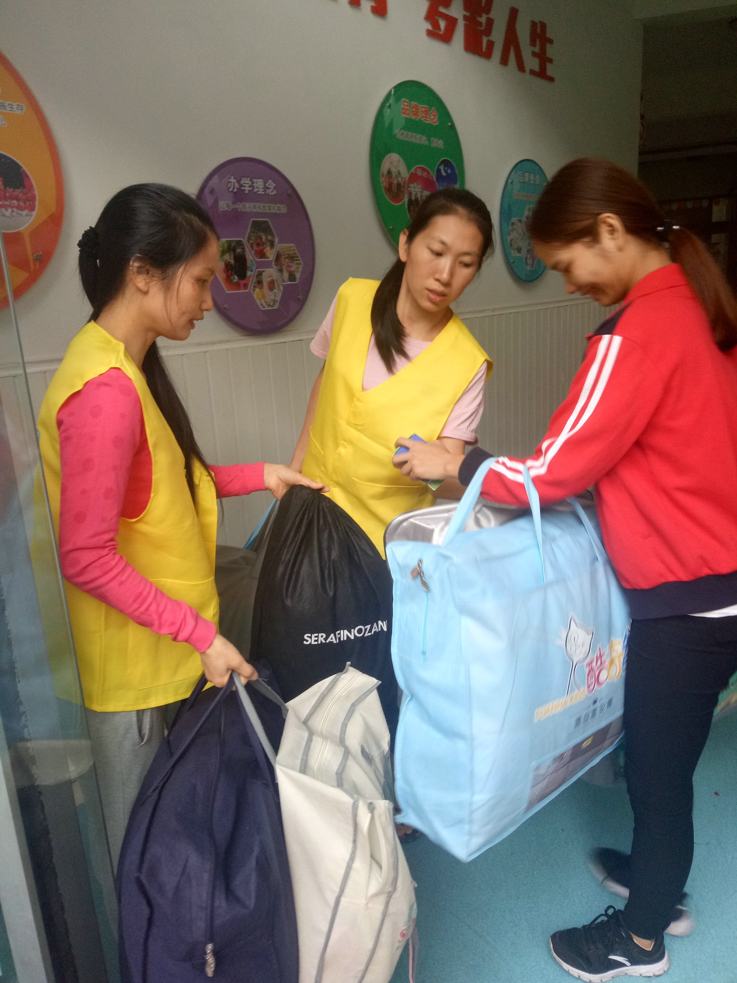 自10月份以来,在特蕾新幼儿园总能看见这样的一支队伍在行动。她们走进幼儿园,在来园或者离园时间帮忙上上下下提被子,大晚上的帮忙创设班级环境。他们不是幼儿园老师,也不是保安,而是自愿来园服务的家长义工们。