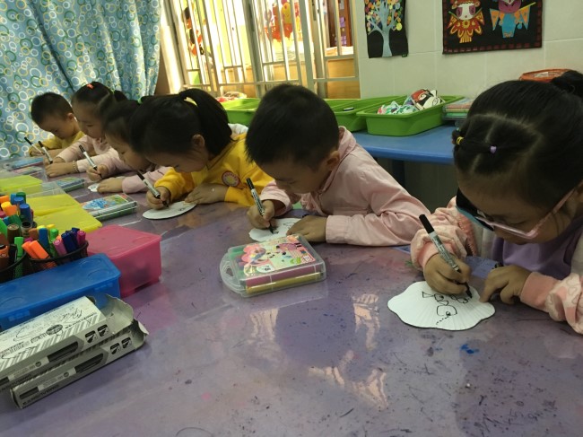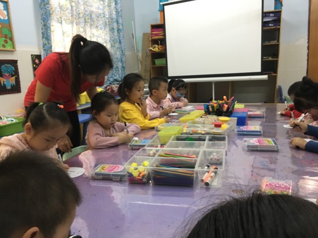 幼儿自由选择材料,幼儿可以选择喜欢的扇子图片作为参考,在扇子上作画。