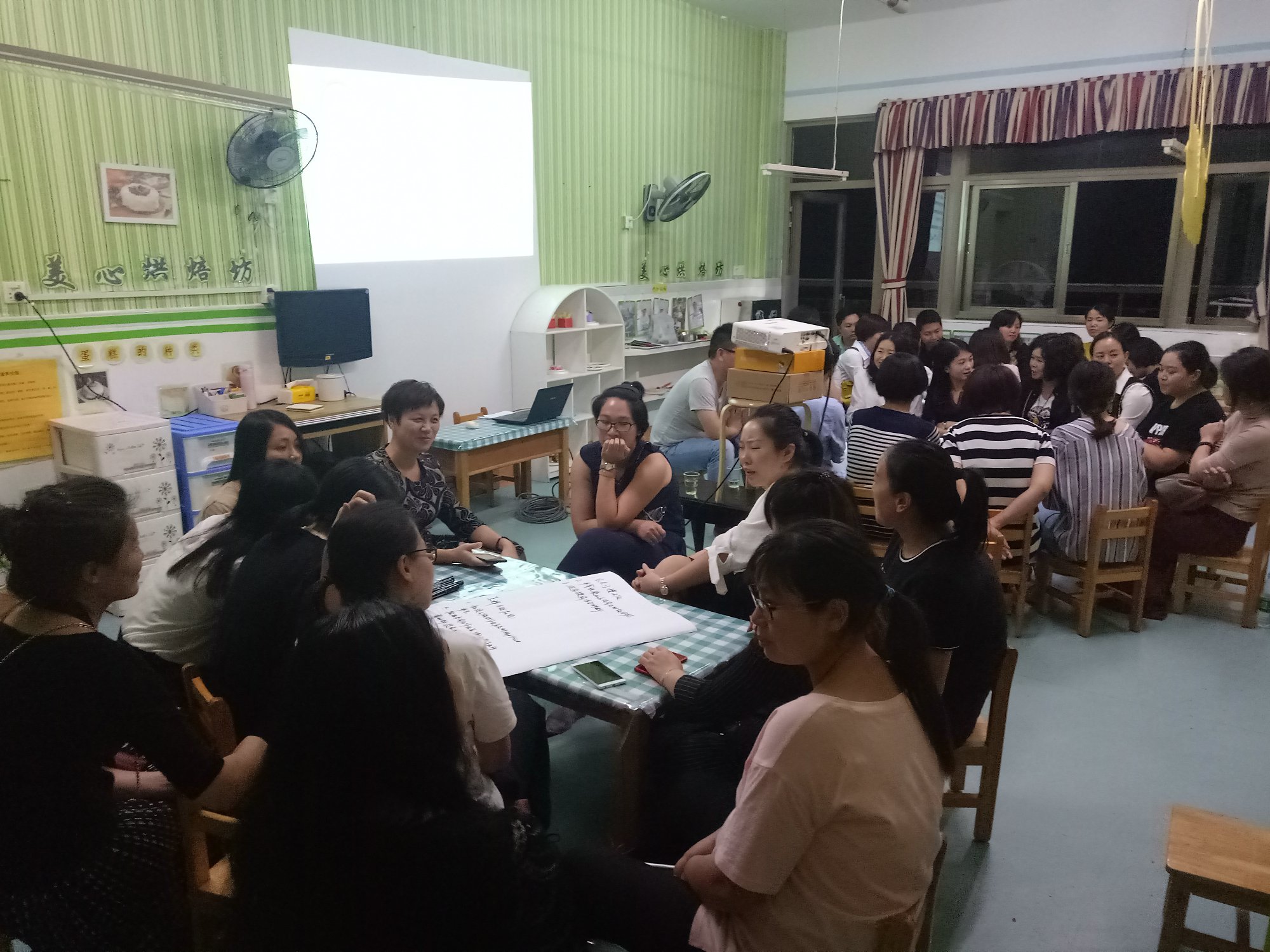 游戏结束后,家长们踊跃发言总结,分享游戏经验。