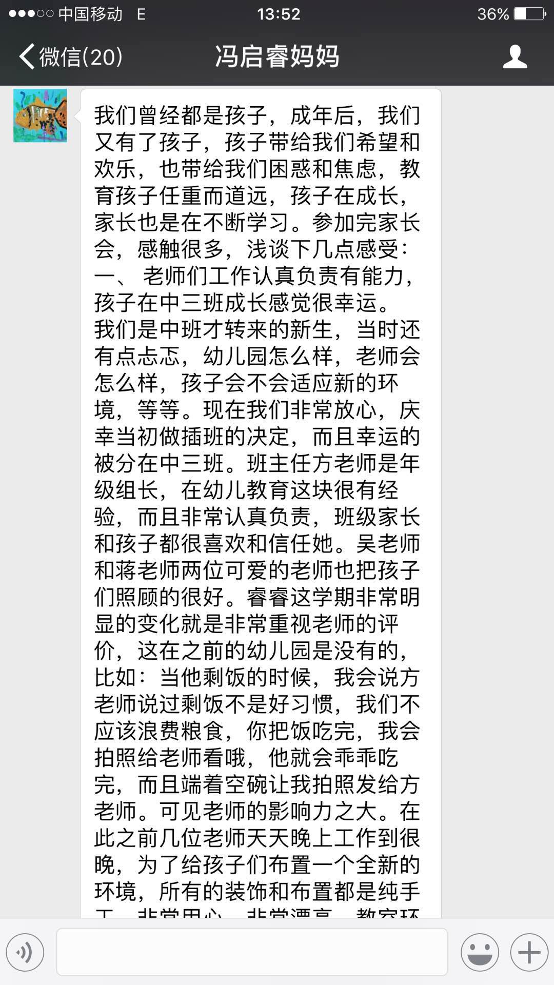 本次家长会进一步增进了家园情感,达成了教育共识,形成了家园教育合力。同时此次家长会也得到了家长们充分的肯定和支持,他们纷纷表示,今后将继续支持幼儿园的各项工作,在教育培养幼儿的过程中,与幼儿园携手共育,让孩子们健康快乐地成长。让我们一起来看看家长们的心声。