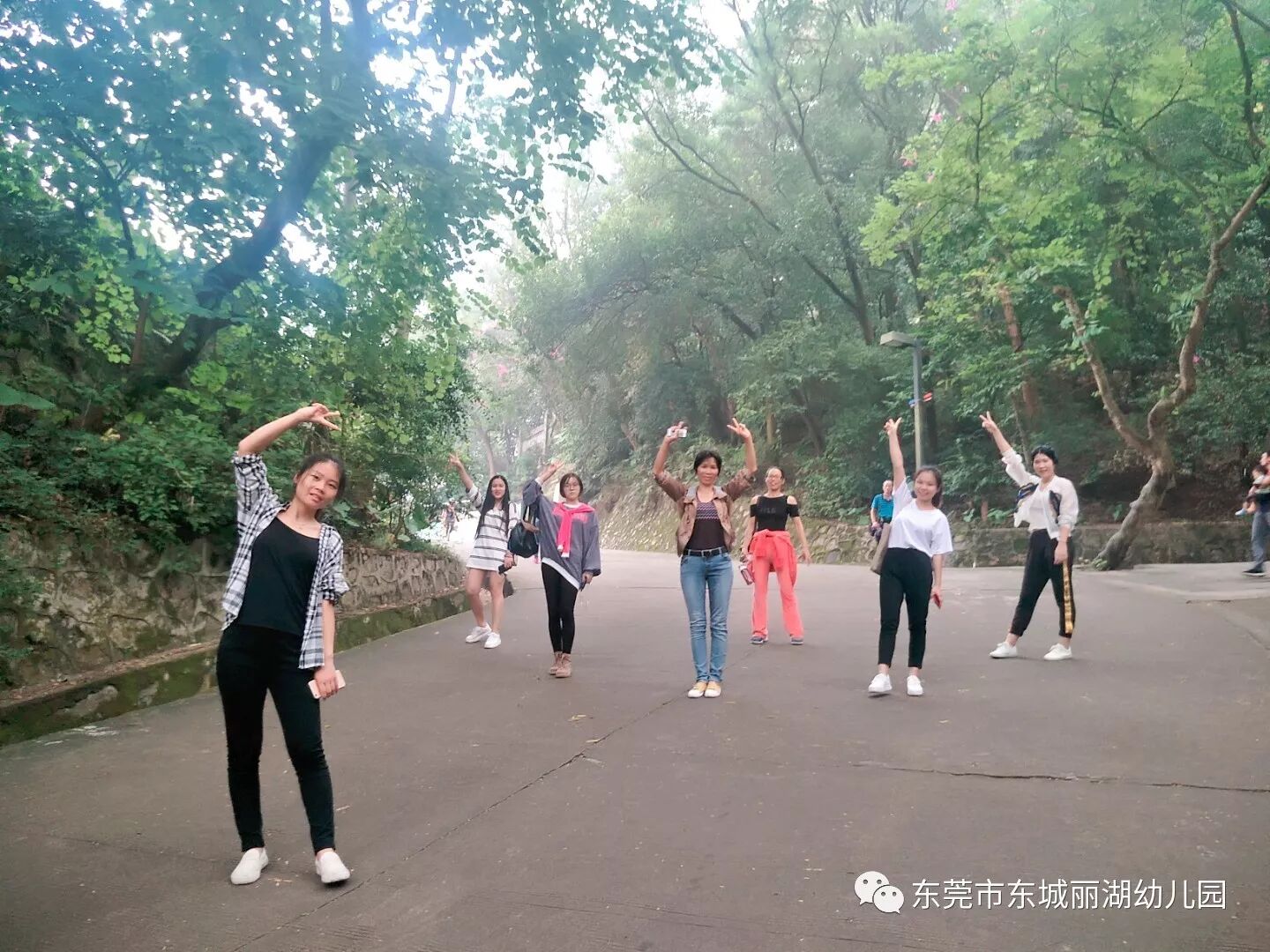 一个人走得很快,一群人走得更远!为了提高咱们大班级组的团体意识,拉近心与心的距离,2017年11月18日上午,我们大班组全体教师来到了我们熟悉的“旗峰公园”,虽然天上下起了毛毛细雨,但也挡不住老师们登高的激情来来来.....先走张美美的合照。