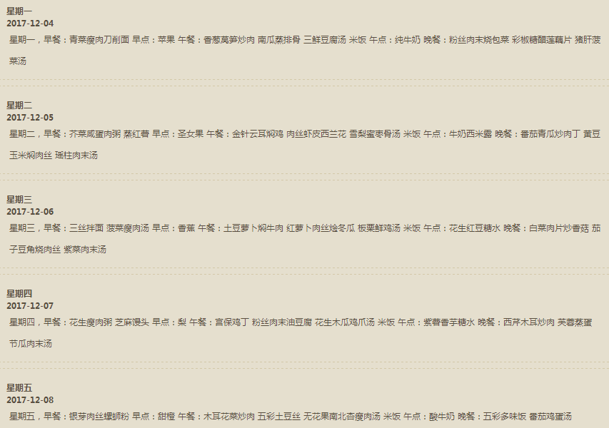 每周食谱