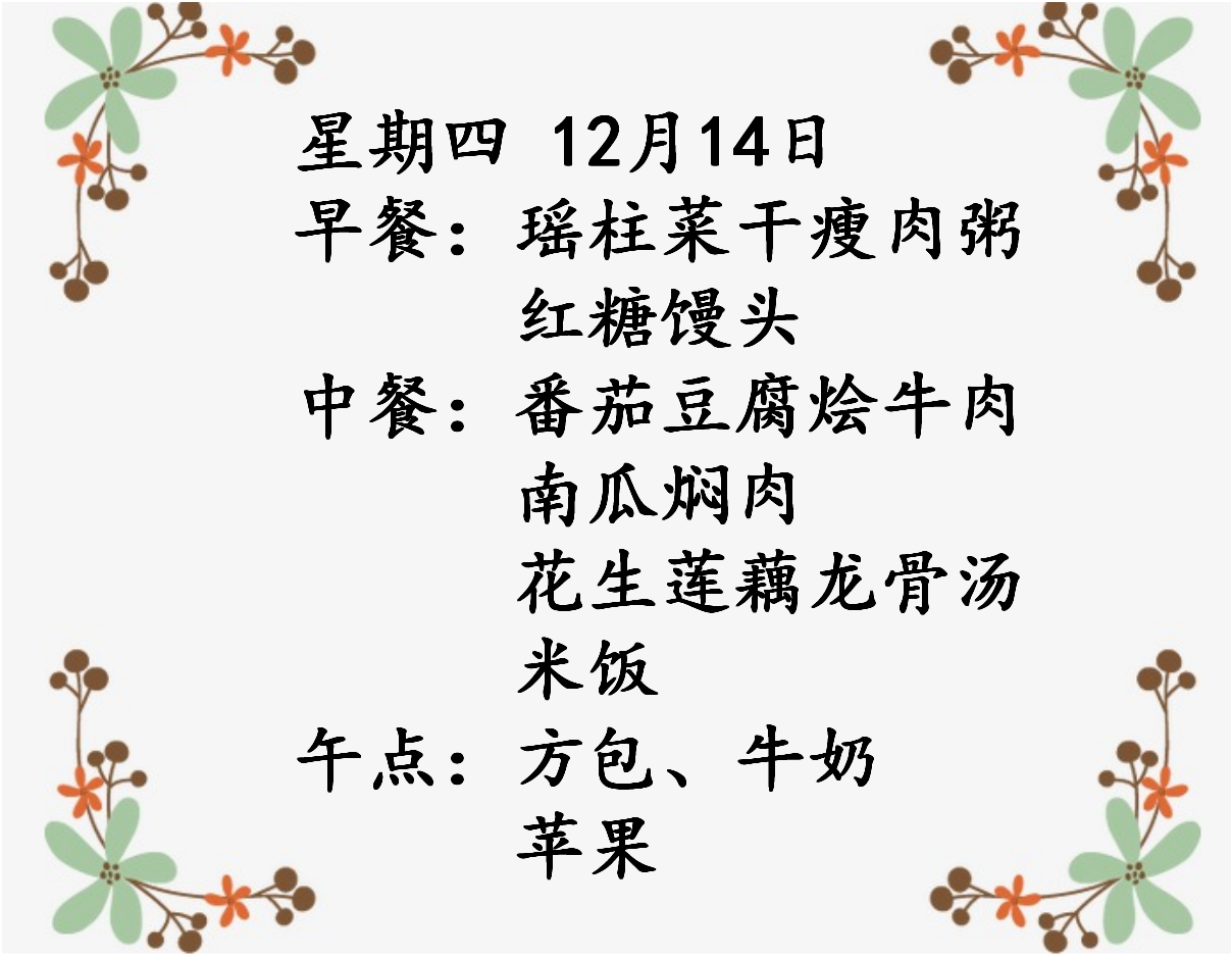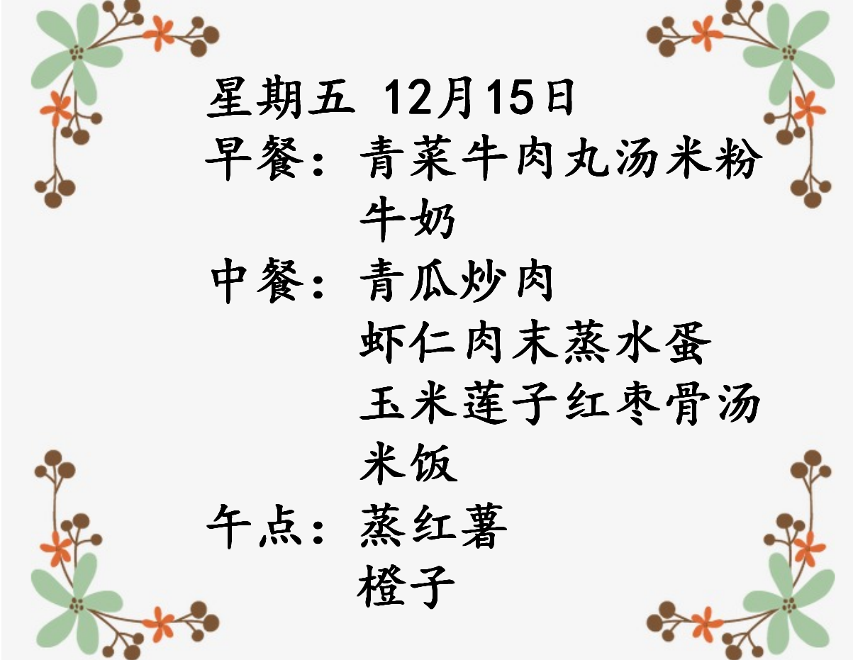 第十六周食谱