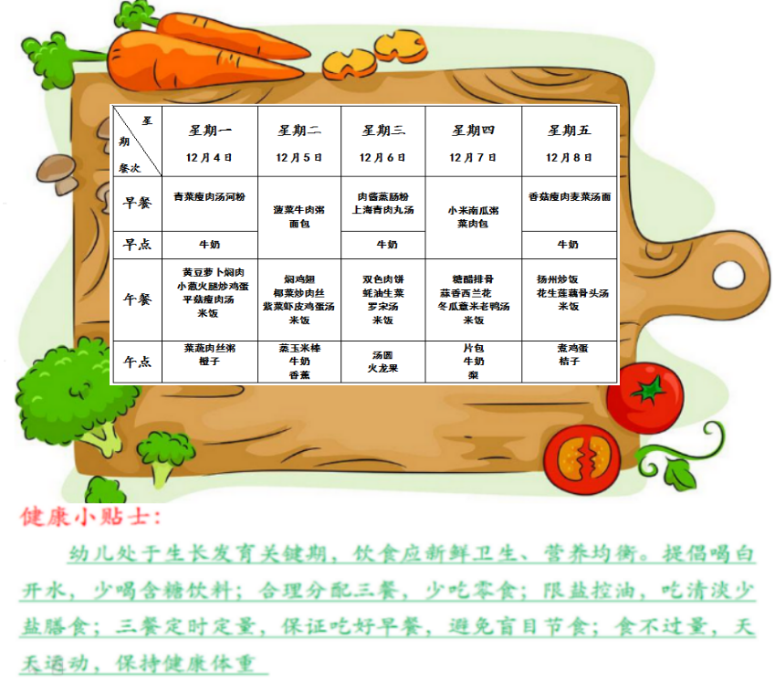 特蕾新裕锦幼儿园第十五周幼儿食谱