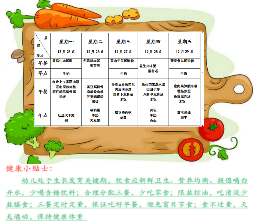 特蕾新裕锦幼儿园第十八周幼儿食谱