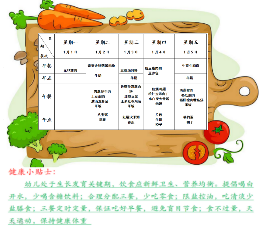 特蕾新裕锦幼儿园第十九周幼儿食谱