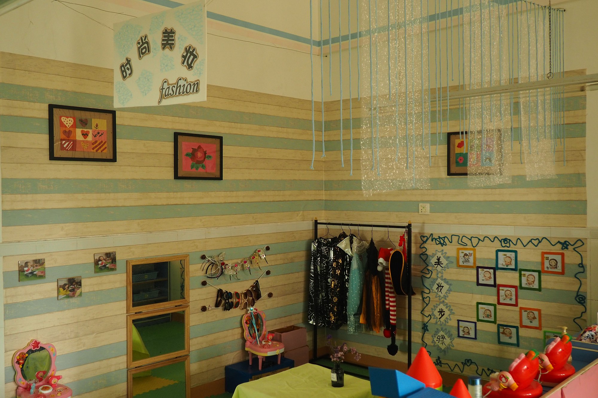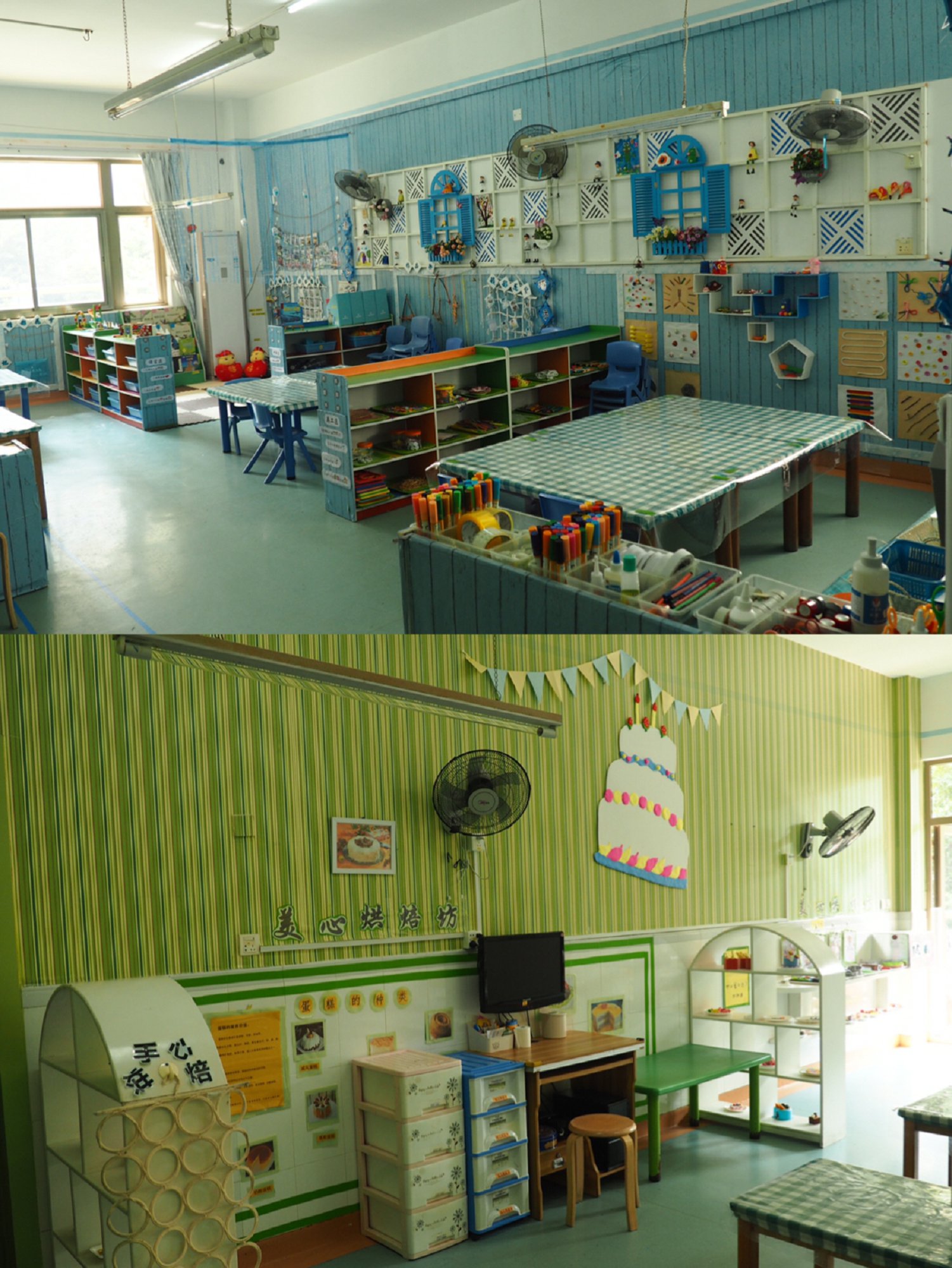 根据年龄特点、教室的空间、面积大小、分区原则科学同步的规划、设置了多种活动区角。