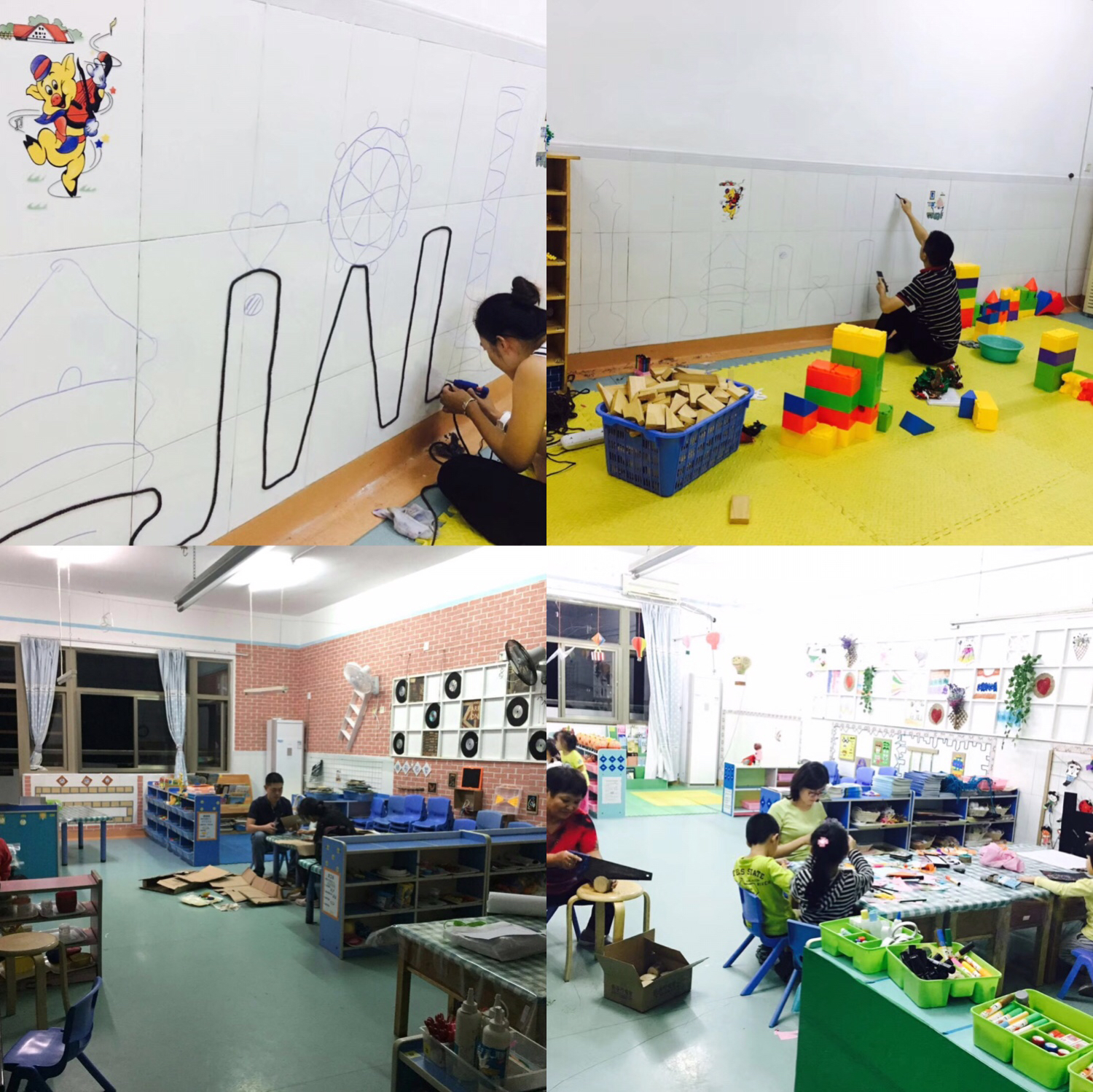 布置环境的过程中,我们也得到了各位家长的积极支持,都一一利用下班的时间过来帮忙,还有我们的孩子们也亲手参与了环境的创设哦,哇!好热闹的场面啊,爸爸妈妈奶奶宝宝们集体出动了,都是小小设计师呢。