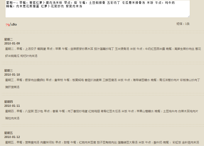 乐恩幼儿园2018.1.8-1.12一周食谱