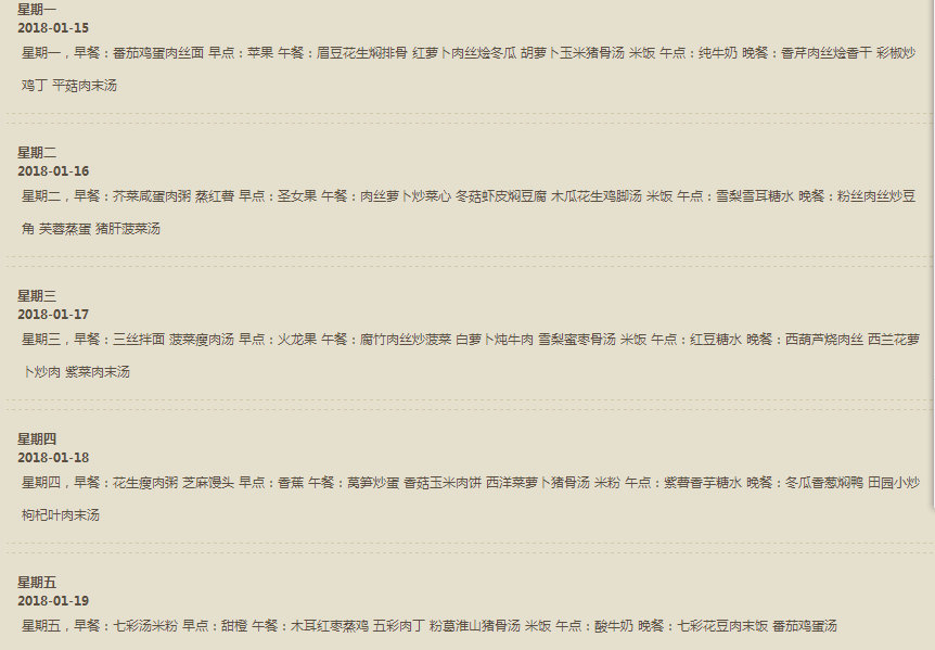 乐恩幼儿园2018.1.15-1.19一周食谱