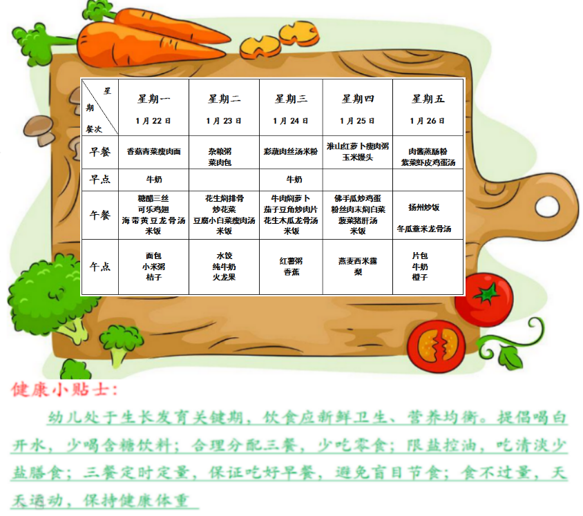 特蕾新裕锦幼儿园第二十二周幼儿食谱