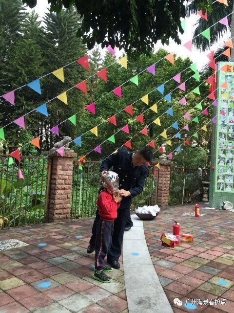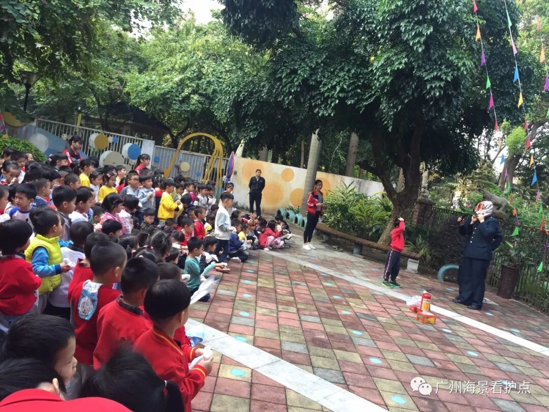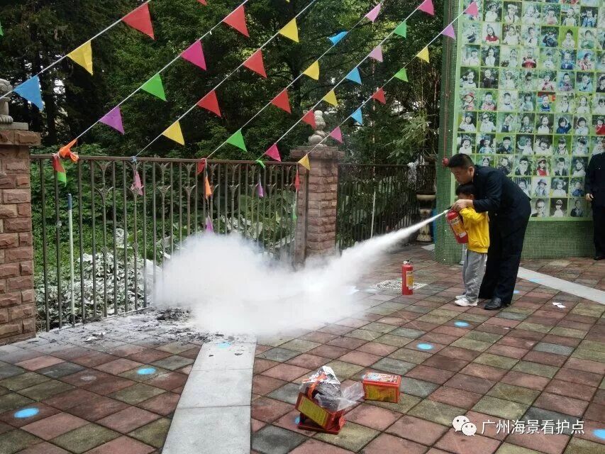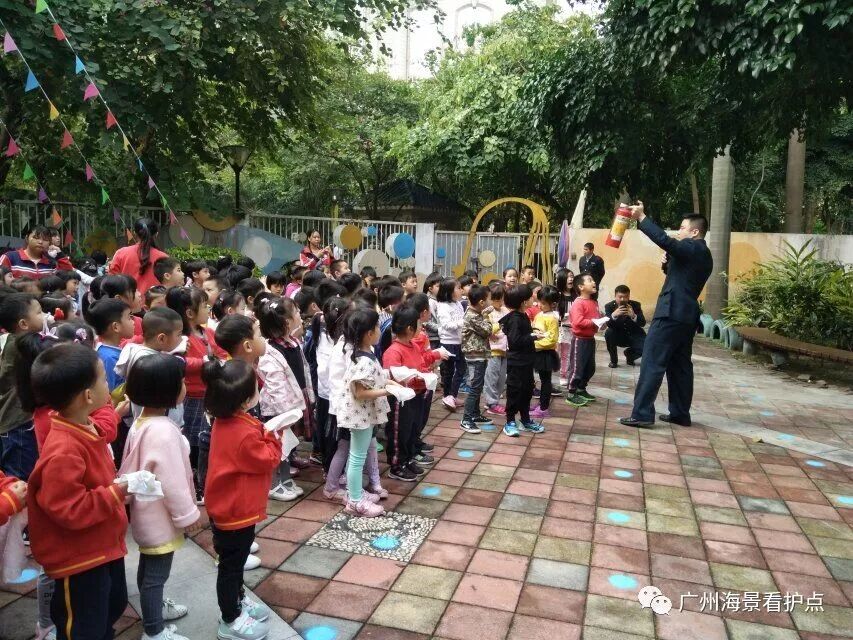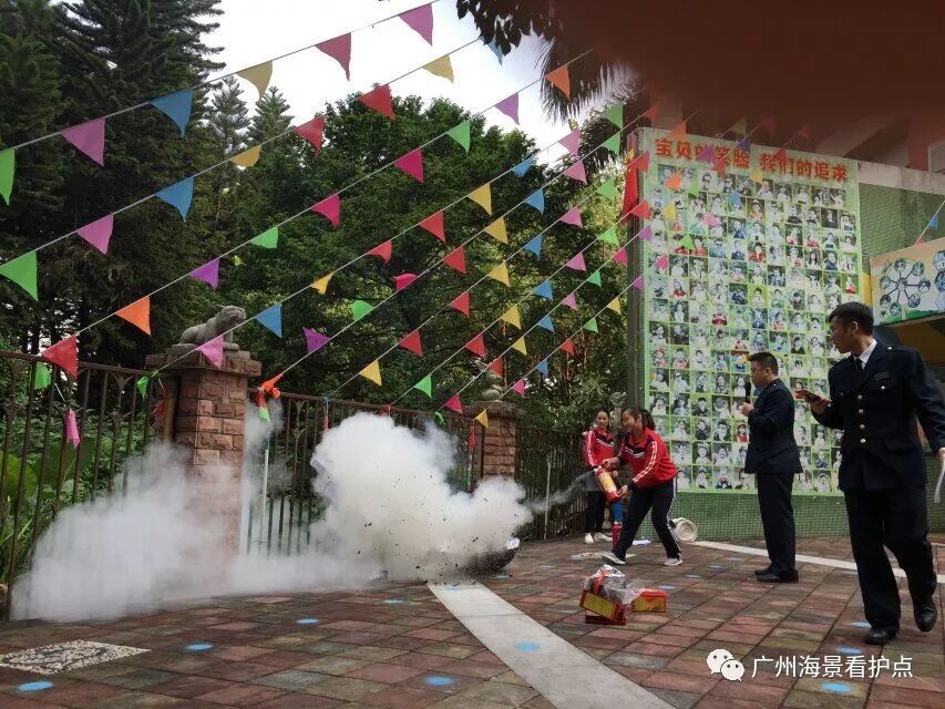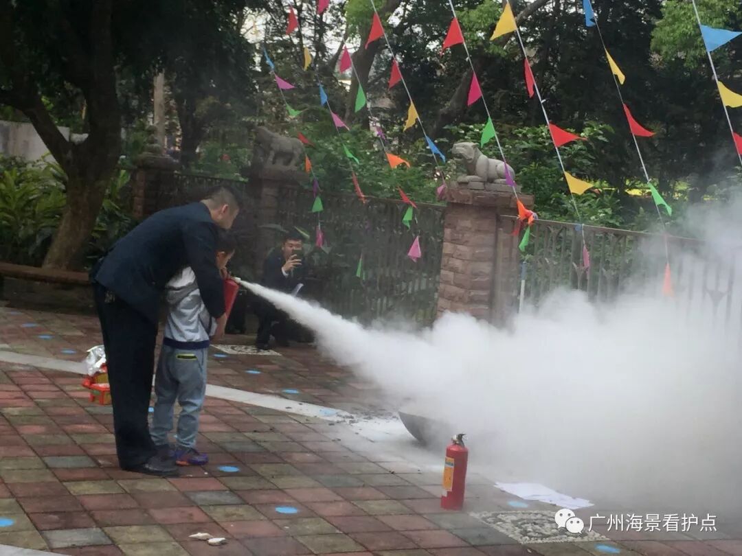 历时4分钟,幼儿全部安全的撤离到操场。幼儿们情绪稳定后,小区安保人员配合给幼儿讲解了防毒面具的使用方法并演示后讲解了灭火器使用步骤。