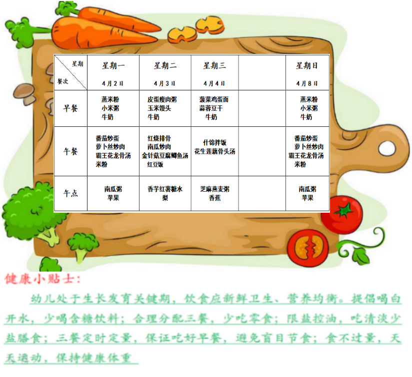 特蕾新裕锦幼儿园第六周幼儿食谱