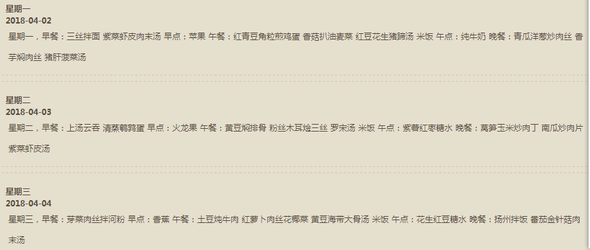 每周食谱